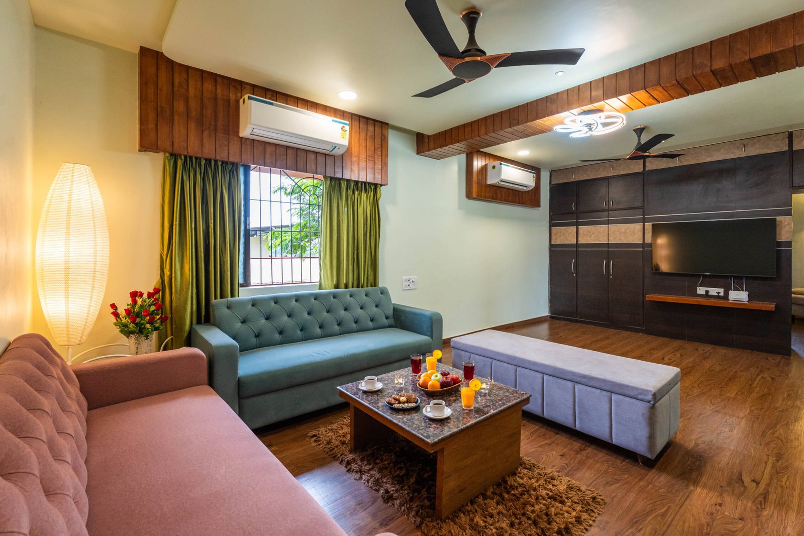 Spread across the 1st and 2nd floors, the Penthouse Suite is the crown jewel of our villa — designed for those who appreciate elevated living. Featuring three expansive river-facing king-sized bedrooms, this suite blends opulence with comfort at every corner. Attached is a spacious 350 sq ft living room equipped with a 55-inch Smart TV and a Refrigerator, perfect for relaxing or entertaining in style. Wake up to breathtaking views, unwind in your exclusive private pool, and experience the space and privacy that define true luxury. Whether you’re a couple seeking a romantic retreat or simply indulging in a lavish escape, the Penthouse Suite promises an unmatched stay marked by elegance, grandeur, and exclusivity.