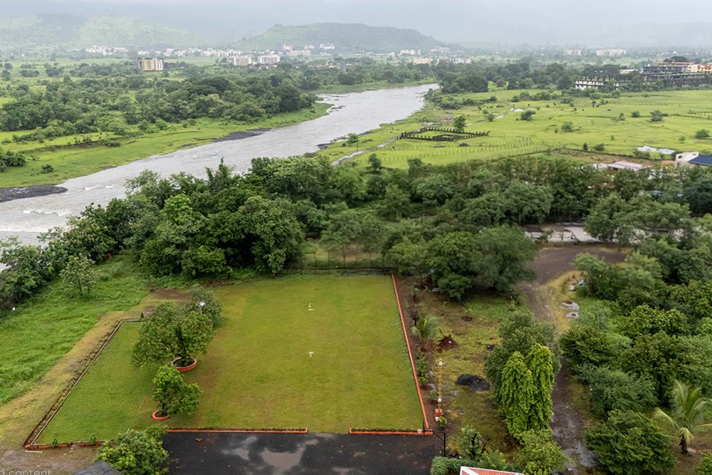 A hill-facing 4.6 Lakh SQ FT. property overlooking the lofty Matheran peaks. Located next to the serene Ulhas River in Karjat, surrounded by 1000+ organically curated plants you will be transported to the realm of nature like never experienced before. You can also enjoy access to an organic farm, campfire, a smoking area, and a beautifully designed selfie point.